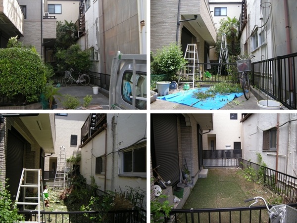 高圧洗浄時によく使う3.5メートルの脚立を持ち込み、作業いたしました。